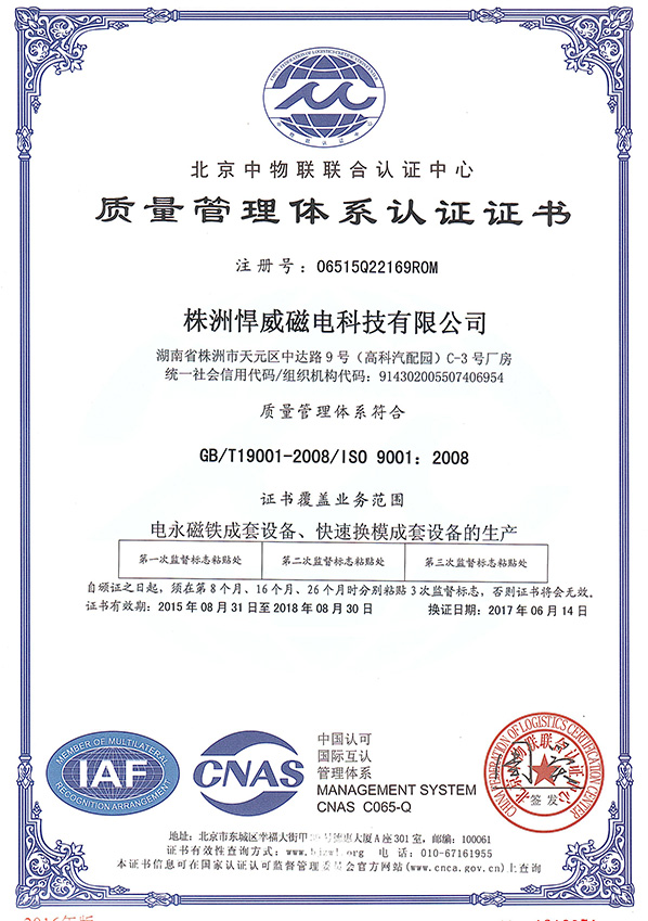 悍威磁電是國內(nèi)一家高新技術(shù)企業(yè),10年潛心鉆研先后獲得6項(xiàng)發(fā)明專利,30項(xiàng)實(shí)用新型專利,研發(fā)的電永磁產(chǎn)品具有“安全、節(jié)能、高效、環(huán)保”等獨(dú)特優(yōu)勢,適用廣泛,遠(yuǎn)銷海外成為全球值得信賴的工業(yè)磁性設(shè)備供應(yīng)商之一。