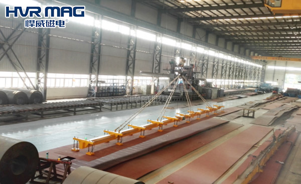 對于鋼板的吊裝,方法有多種多樣,但是22米的長鋼板吊裝就比較復(fù)雜了,一般的鋼板吊具進行吊裝的時候容易造成鋼板變形,河南某集團就因為長鋼板吊裝難的問題而尋求悍威磁電的幫助,希望悍威磁電的工程師可以根據(jù)他們的工況來進行方案定制,為他們解決長鋼板吊裝難的問題。