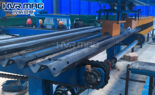 我們給出的方案:首先因?yàn)橥呃惆宄叽绾艽?,而且都是比較薄那么我們選用針對(duì)薄板的小型磁鐵,采取多吊點(diǎn)布局。瓦楞板最長20M,最寬12米。我們的起重電永磁吊具外形長度需要做到18-19米,寬度3米,采取兩臺(tái)聯(lián)吊??紤]到物流發(fā)貨問題,把這兩臺(tái)起重電永磁吊具做成可拼接式的。這樣不僅解決物流發(fā)貨問題,又能保證外形尺寸不變。還想了解什么問題,小編都會(huì)為您一一解答。