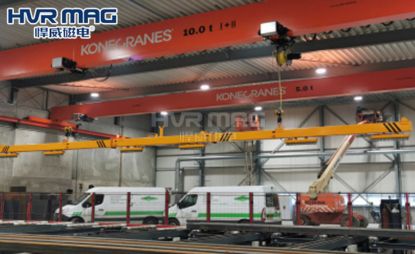 一般我們所指的兼容性是說同一種類型工件的尺寸大小,重量大小來可以通過磁鐵分組控制,磁力大小調解和橫梁伸縮等方式來進行兼容。所以,通常情況下平板類和型材類一臺電永磁吊具是不能兼容搬運的。