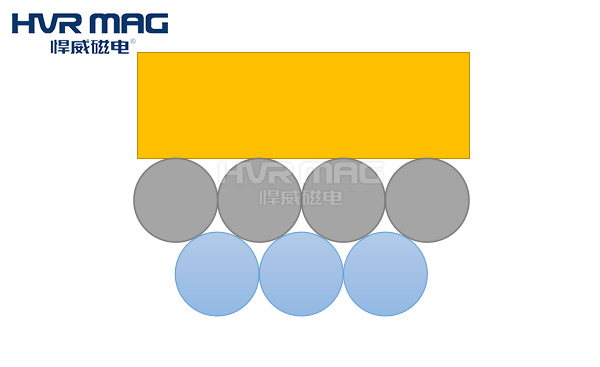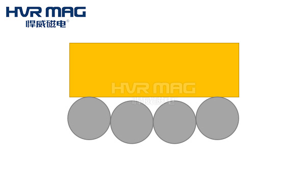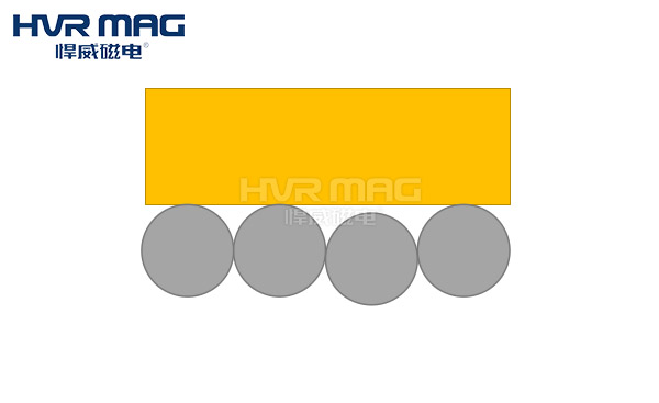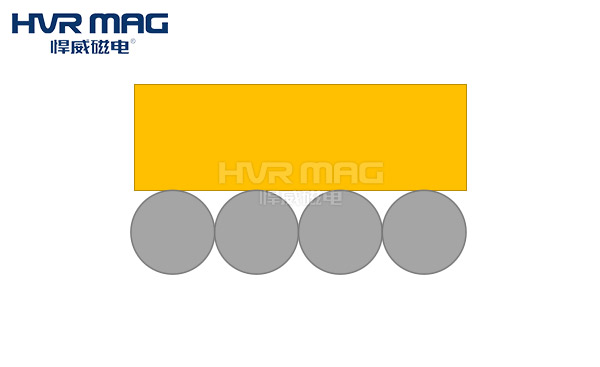 第三種工況的話就是中間會(huì)有一個(gè)圓管他的位置比其余幾根位置低數(shù)mm,悍威磁電則可通過(guò)充磁瞬間產(chǎn)生的磁場(chǎng)將其吸上來(lái)。以便達(dá)到可以搬運(yùn)的工況。