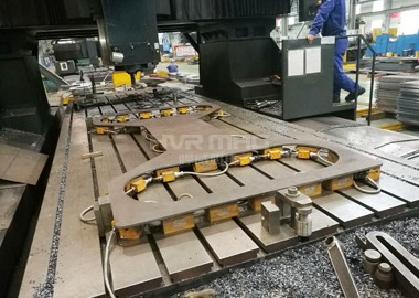 圖中的電永磁吸盤上下兩面均有磁力,單面最大吸力640kg, 可自由組合擺放,用于不同工件加工。