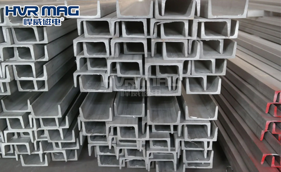 型材是一種利用鐵、鋼或者具有一定強(qiáng)度和韌性的材料(如塑料、鋁、玻璃纖維等)通過軋制、擠出、鑄造等工藝制成的具有一定幾何形狀的物體。型材按照不同形狀,可分為角鋼、槽鋼、圓鋼、扁鋼、無縫鋼管、工字鋼、矩形管、重軌等。小到桌椅,大到汽車、太陽能設(shè)備,型材憑借著高價性比和高利用率的優(yōu)點(diǎn)在日常生活中廣泛應(yīng)用。然而,型材因?yàn)槠湫螤罡鳟?,很難一次性高效下料、碼垛,讓不少企業(yè)操碎了心。如今,悍威磁電型材專用電永磁吊具專為解決型材吊運(yùn)問題而設(shè)計,讓企業(yè)省時更省心,快跟隨小編一起來了解下吧。