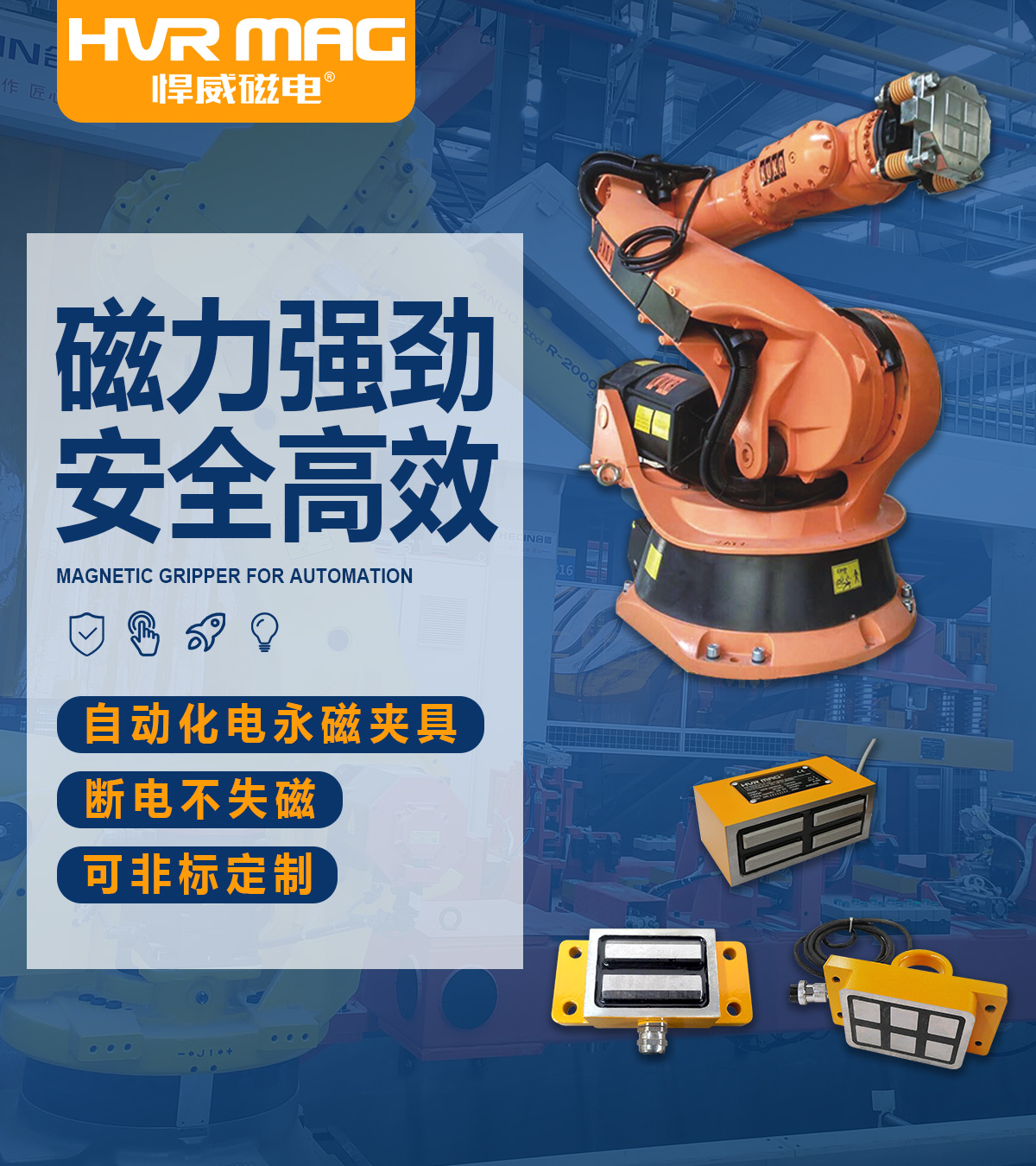 連接到自動化設(shè)備或操縱機器人的電永磁鐵可以由PLC操作。通常僅需要3秒就能使自動化設(shè)備上的磁鐵完成上磁和消磁操作,大大降低人工成本并提高客戶車間的生產(chǎn)率。
