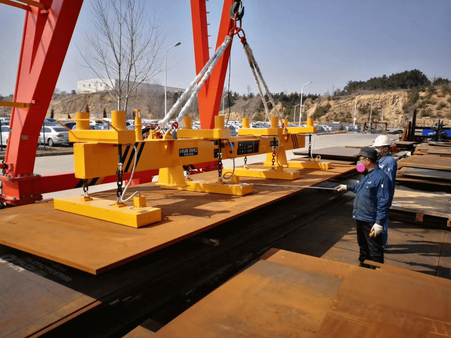 1. 鋼板的吊裝搬運(yùn):在大型船體分段或單張鋼板的起吊上,電永磁吊具可以適應(yīng)不同尺寸不同厚度的鋼板,能夠快速吸附并固定住鋼板,保證吊裝作業(yè)的安全性