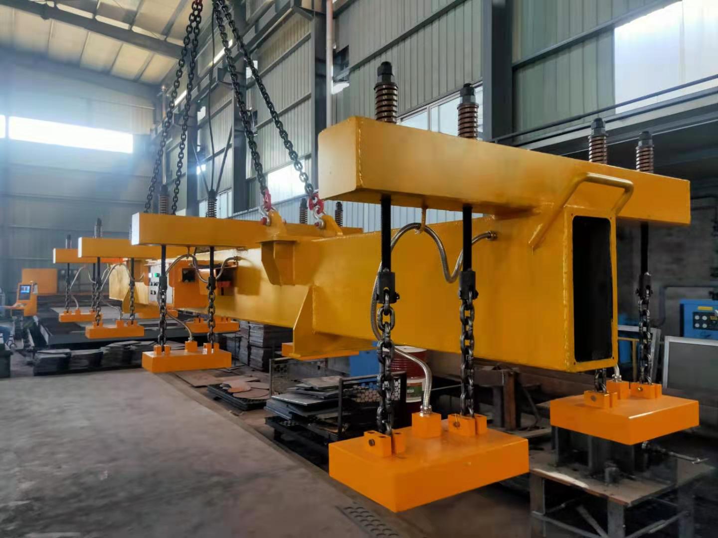 HEPMP-1200P50電永磁鐵8臺(tái)聯(lián)吊,吊梁長(zhǎng)度6米以內(nèi)(適應(yīng)6米激光下料工作臺(tái))