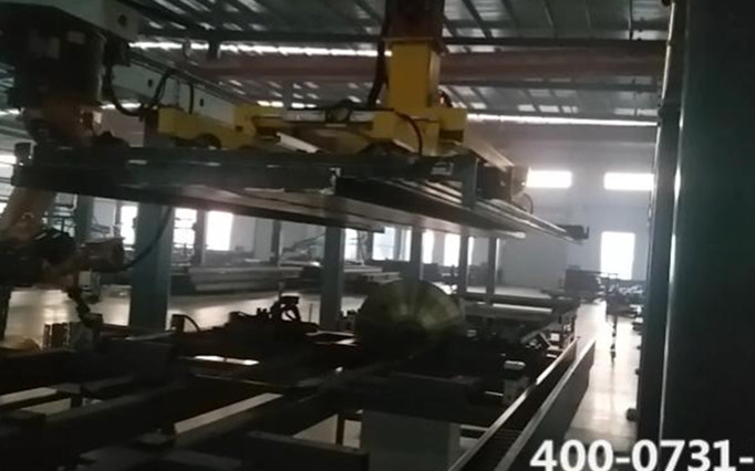 該機(jī)器人抓手專為在機(jī)器人焊接生產(chǎn)線中由鋼制成的停車升降機(jī)框架的取放而設(shè)計。